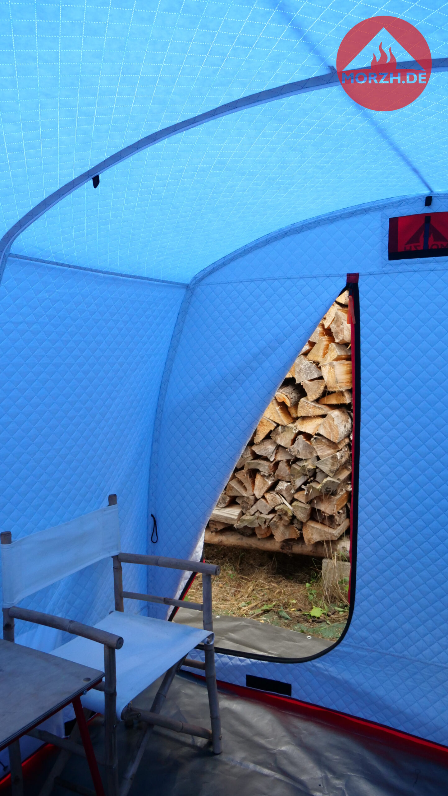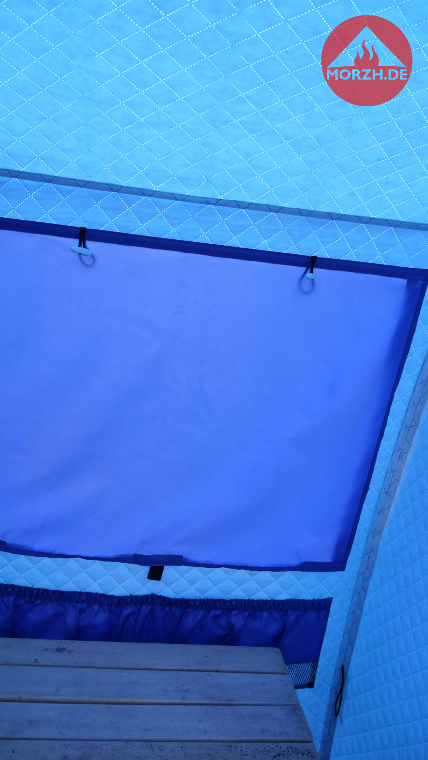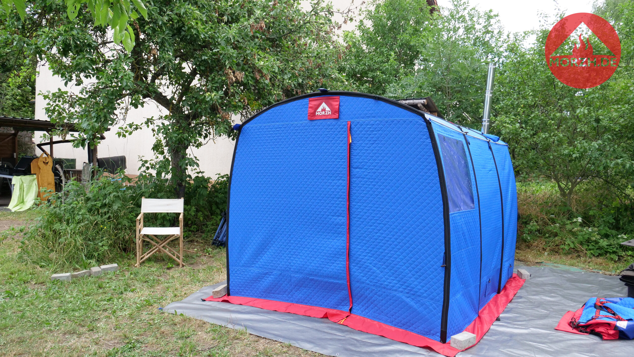 In der großen Sauna von MORZH mit 3×2,3 m Grundfläche können 8 Personen gut saunieren. Mit einer einziebaren Zwischenwand (diese ist inklusive) kann ein 1m langer Vorraum und ein 2m langer Hauptraum geschaffen werden. Damit ist man sehr flexibel. Ein großes Saunazelt für bis zu 8 Personen oder abgeteilt etwas kleiner zu dritt, dafür aber einen Vorraum zum Umziehen bzw. zu zweit als Ruheraum oder das große Camping Zelt zu den kühlen Jahreszeiten sogar mit Ofen. Alles ist möglich.
