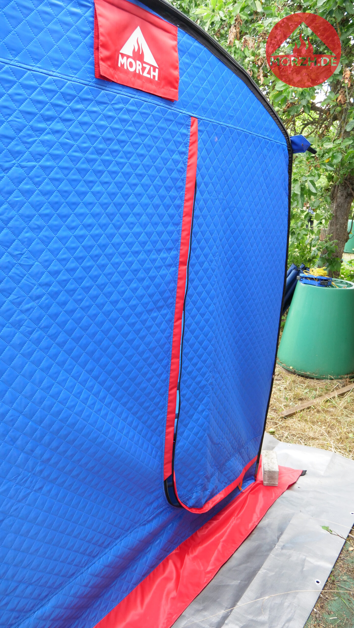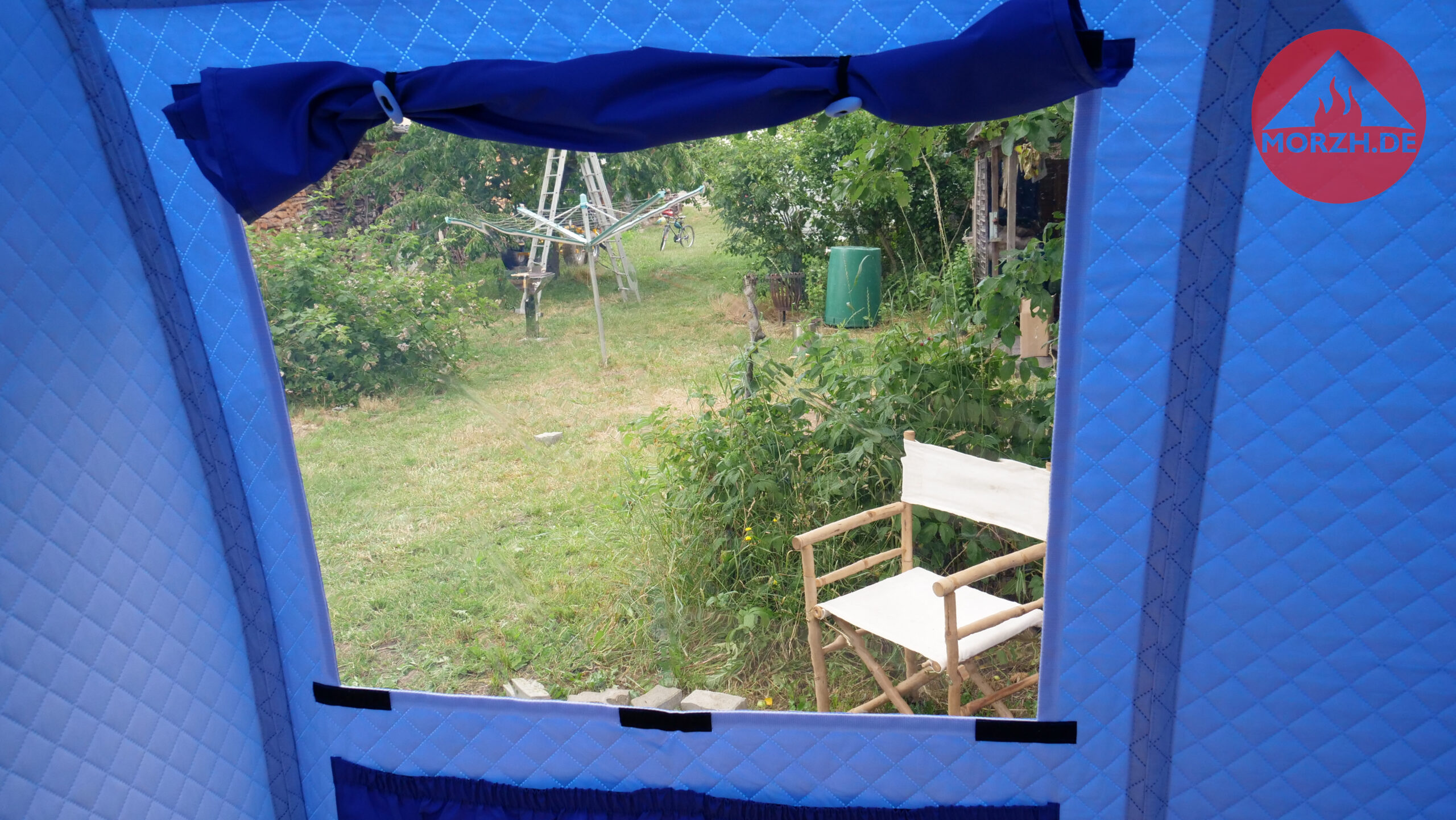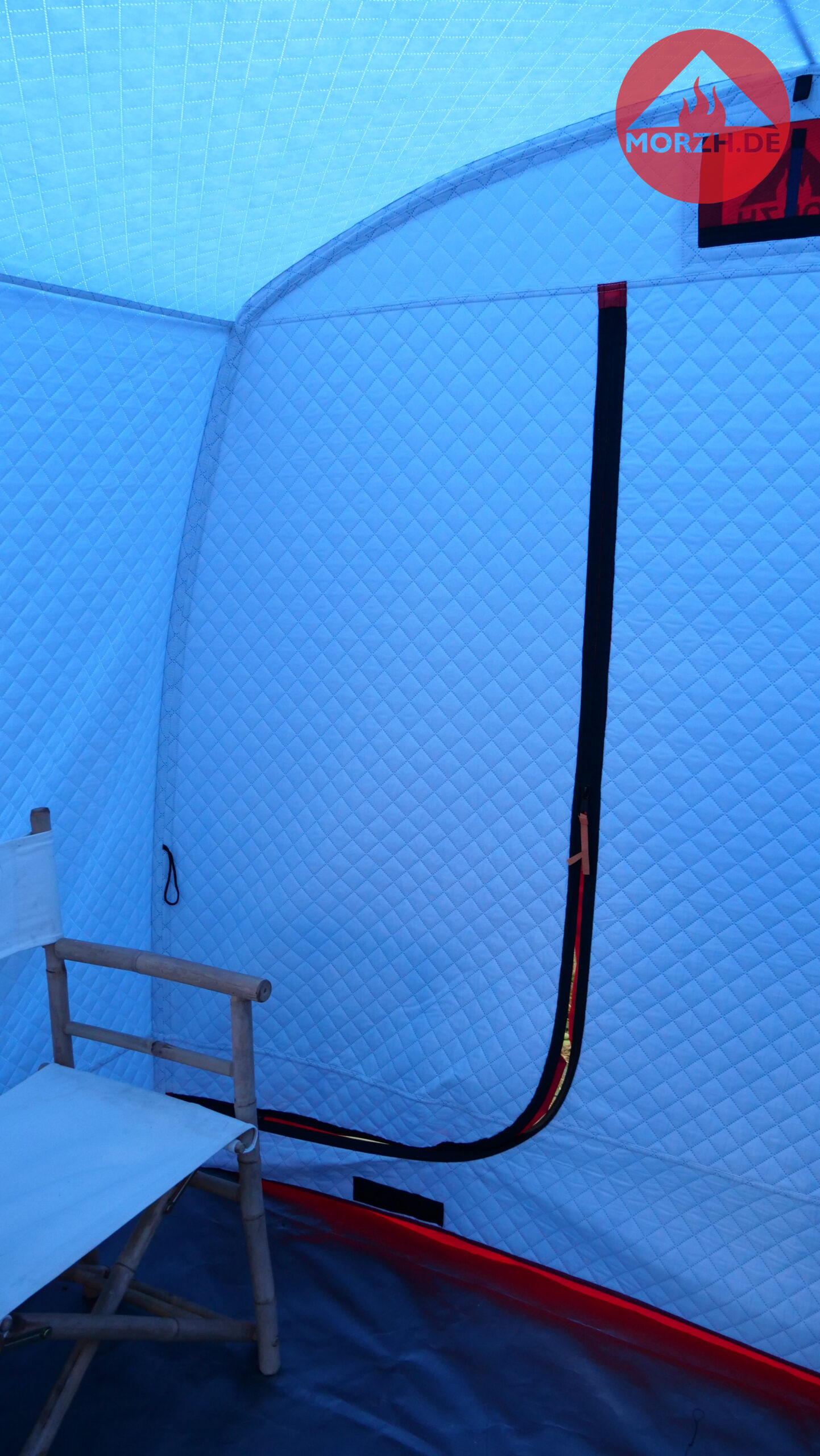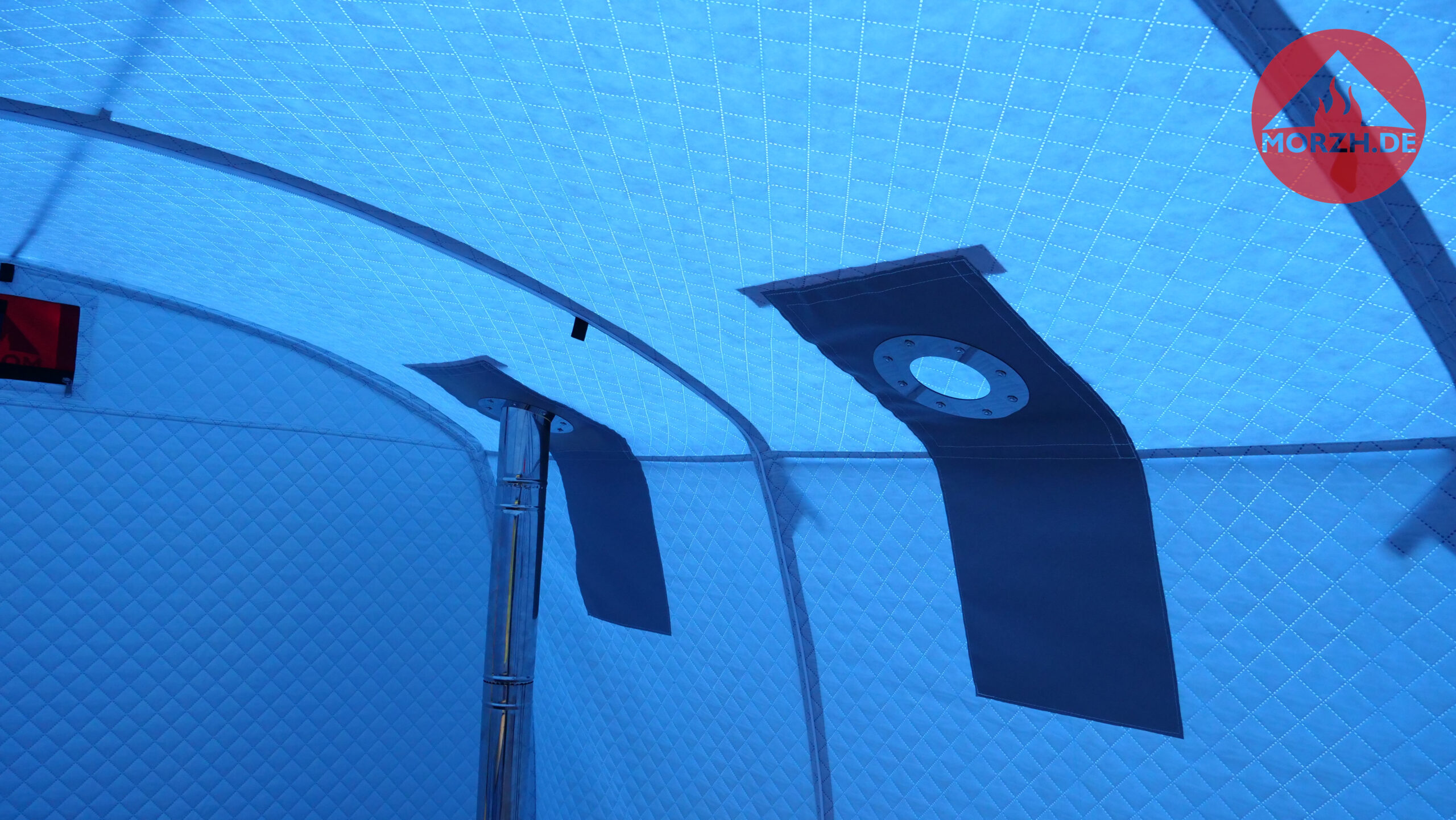 In der großen Sauna von MORZH mit 3×2,3 m Grundfläche können 8 Personen gut saunieren. Mit einer einziebaren Zwischenwand (diese ist inklusive) kann ein 1m langer Vorraum und ein 2m langer Hauptraum geschaffen werden. Damit ist man sehr flexibel. Ein großes Saunazelt für bis zu 8 Personen oder abgeteilt etwas kleiner zu dritt, dafür aber einen Vorraum zum Umziehen bzw. zu zweit als Ruheraum oder das große Camping Zelt zu den kühlen Jahreszeiten sogar mit Ofen. Alles ist möglich.