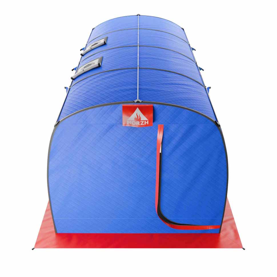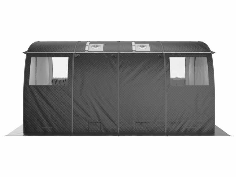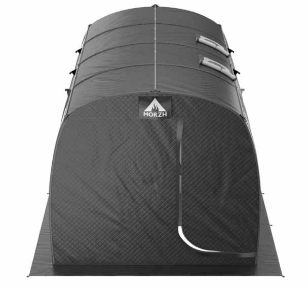 In der großen Sauna von MORZH mit 4×2,3 m Grundfläche können 12 Personen gut saunieren. Mit einer einziebaren Zwischenwand (diese ist inklusive) kann ein 2m langer Vorraum und ein 2m langer Hauptraum geschaffen werden. Damit ist man sehr flexibel. Ein großes Saunazelt für bis zu 12 Personen oder abgeteilt etwas kleiner zu dritt, dafür aber einen Vorraum zum Umziehen bzw. zu zweit als Ruheraum oder das große Camping Zelt zu den kühlen Jahreszeiten sogar mit Ofen. Alles ist möglich.