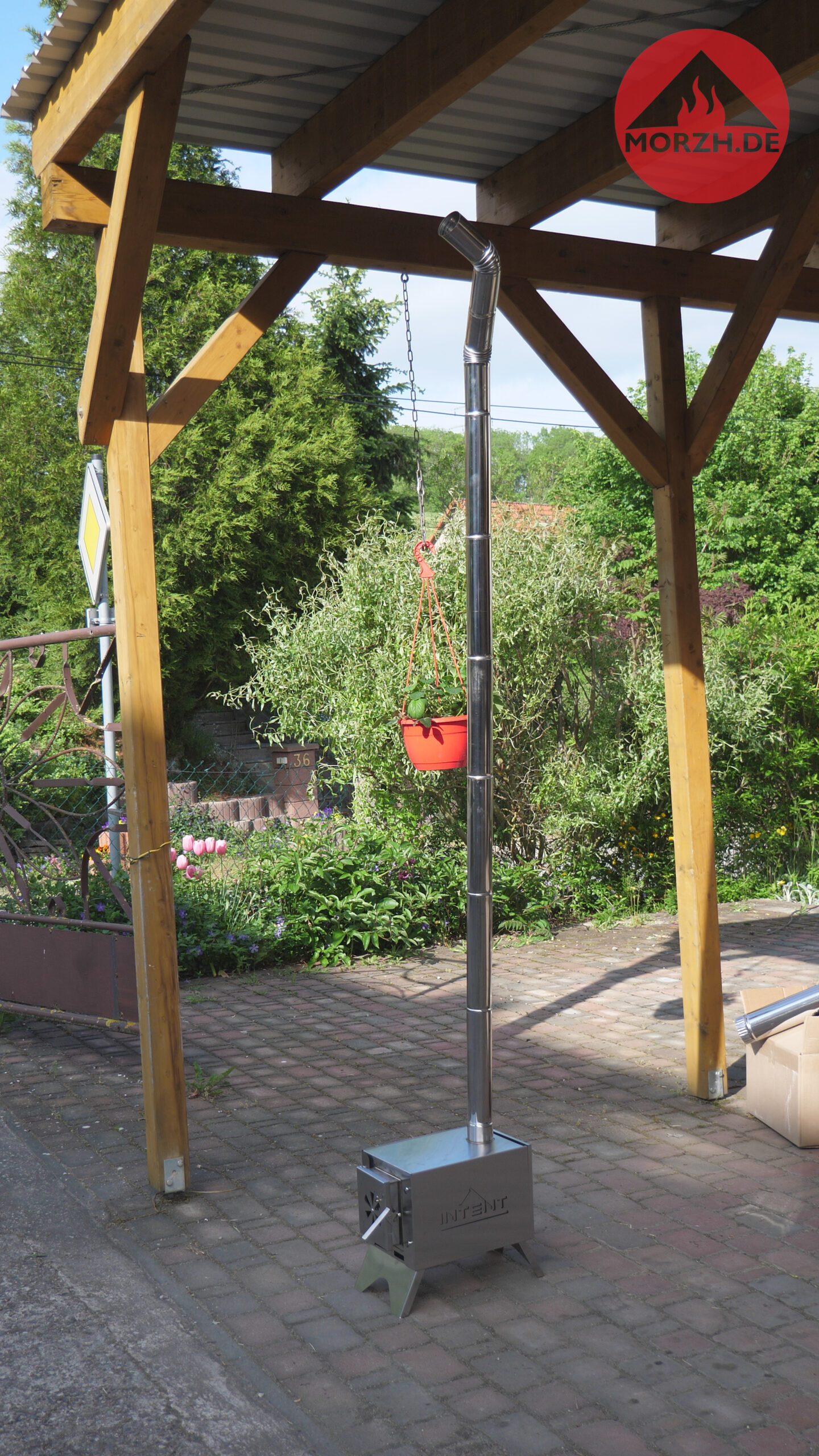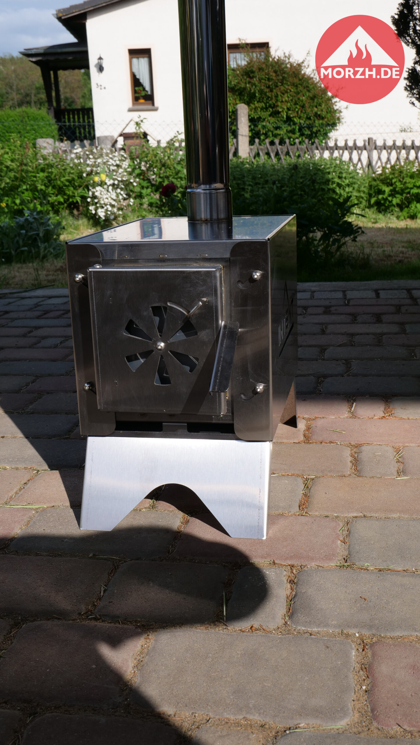 Kleiner Zeltofen zum Kochen und Heizen. Ideal um die Saunazelte auch als Winterzelte zu nutzen oder bei größeren Zelten, z.b. MORZH Max, als zweiter Ofen um den gesamten Raum auf Saunatemperatur zu bekommen.